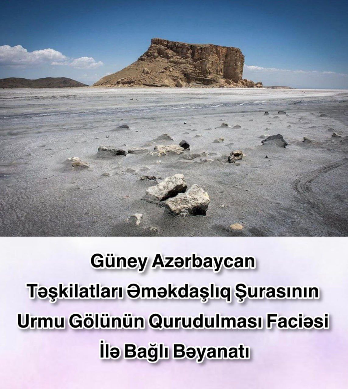Urmu Gölünün qurudulması, Orta Doğunun ən böyük ekoloji fəlakətlərindən biri və İran İsalm Respublikası rejiminin Azərbaycan Türk Millətinə qarşı sömürgəçi davranışının açıq bir nümunəsidir. Bu faciənin nəticələri təkcə bir göl və ya bir bölgə ilə məhdudlaşmır, əksinə milyonlarla insanın Azərbaycan və hətta ətraf bölgələrdə sosial, iqtisadi və insani həyatını təhdid edir. Mütəxəssislər xəbərdarlıq ediblər ki, bu proses davam edərsə, yaxın gələcəkdə, o qədər də uzaq olmayan bir zamanda, böyük şəhərlərdə – o cümlədən Təbrizdə yaşayış mümkünsüz olacaq.