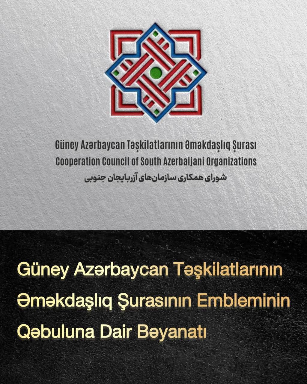 Güney Azərbaycan Təşkilatlarının Əməkdaşlıq Şurası bu bəyanatla Şuranın rəsmi emblemini qəbul etdiyini elan edir.